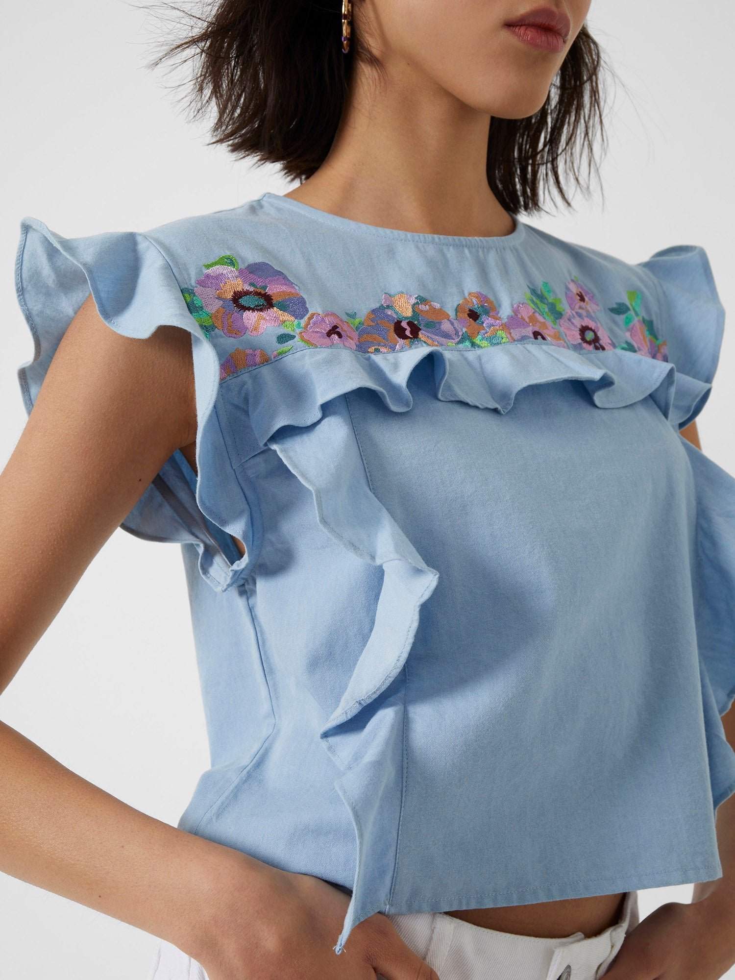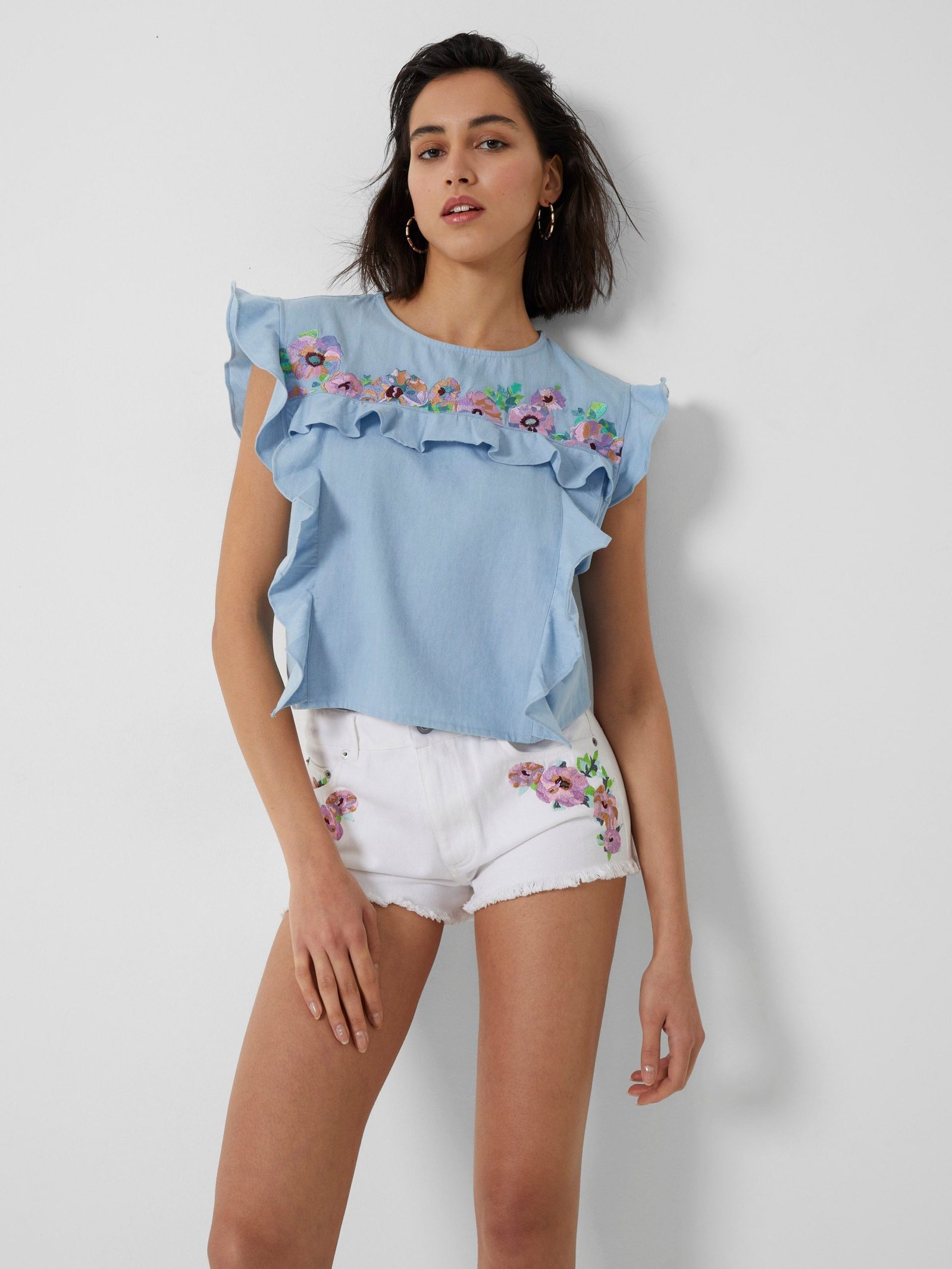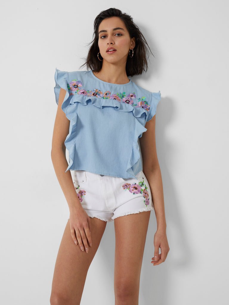 It’s all about the frills for us. Slip the Achoo Embroidered Top?into your summer portfolio to get the most out of its embroidered profile and frilled trims.