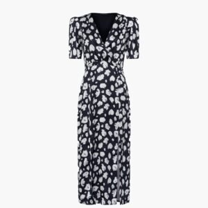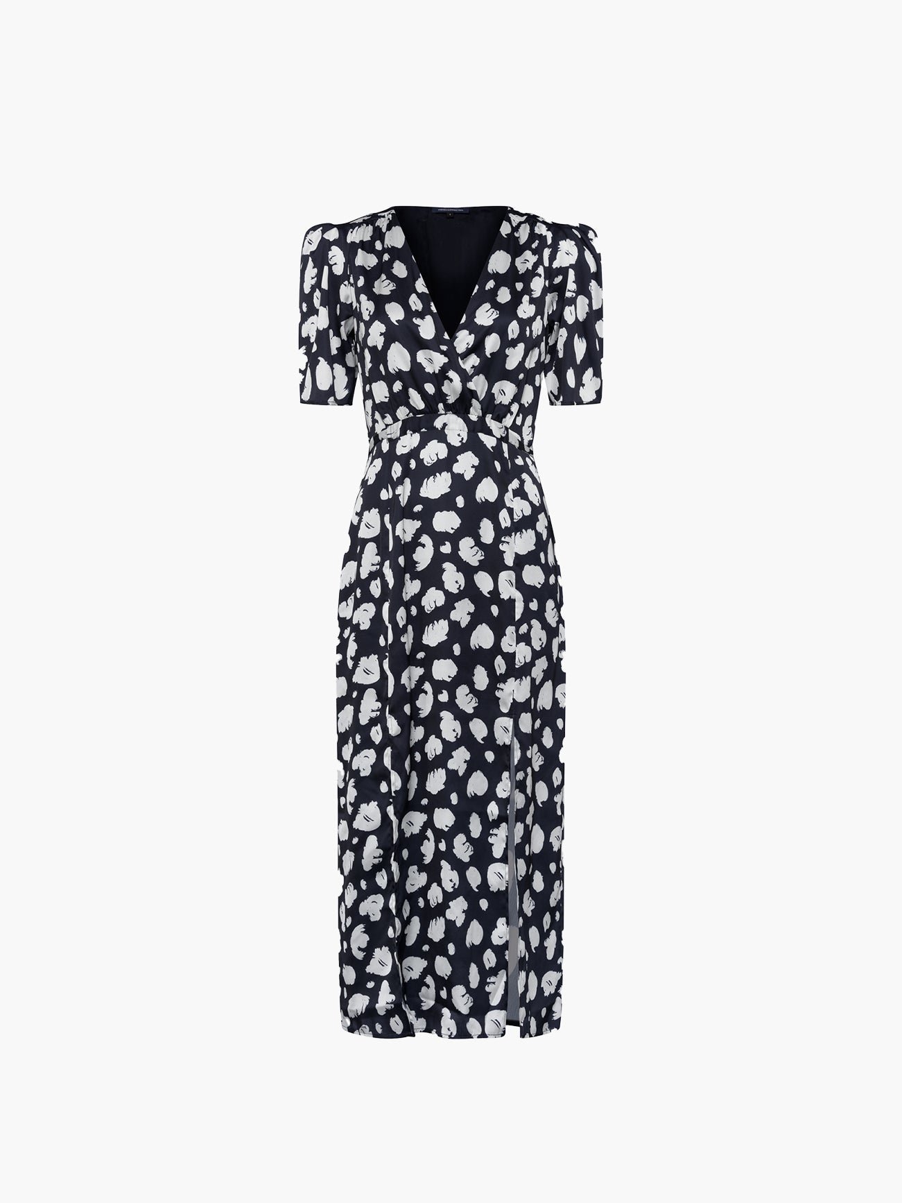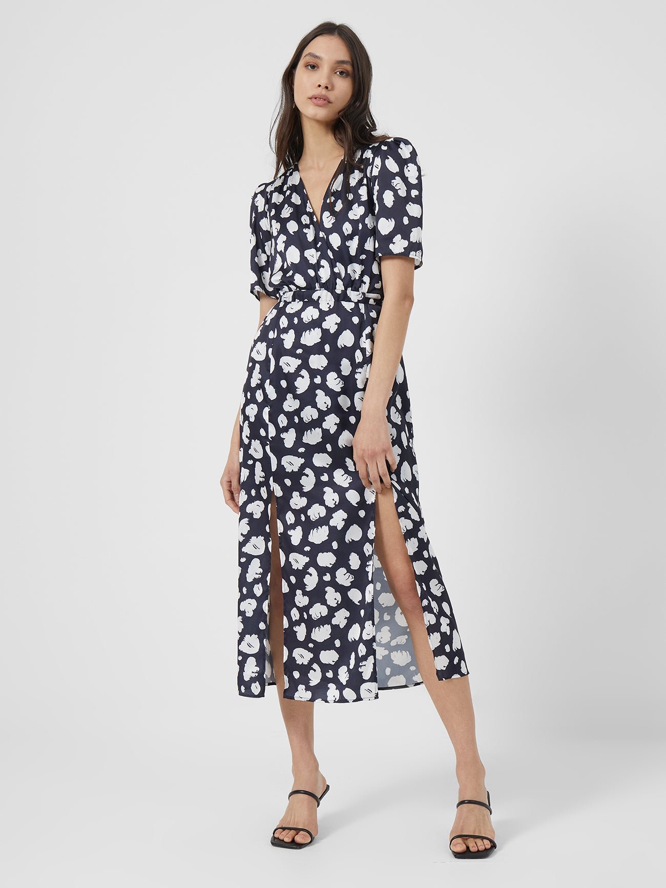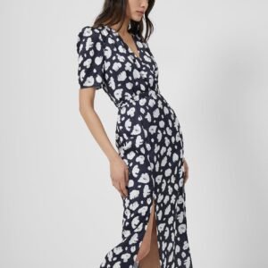 Master the dress code for every social event in sight with the Aimee Enid Front Split Midi Dress. In a glossy, satin construction, it’s printed with contrasting florals.