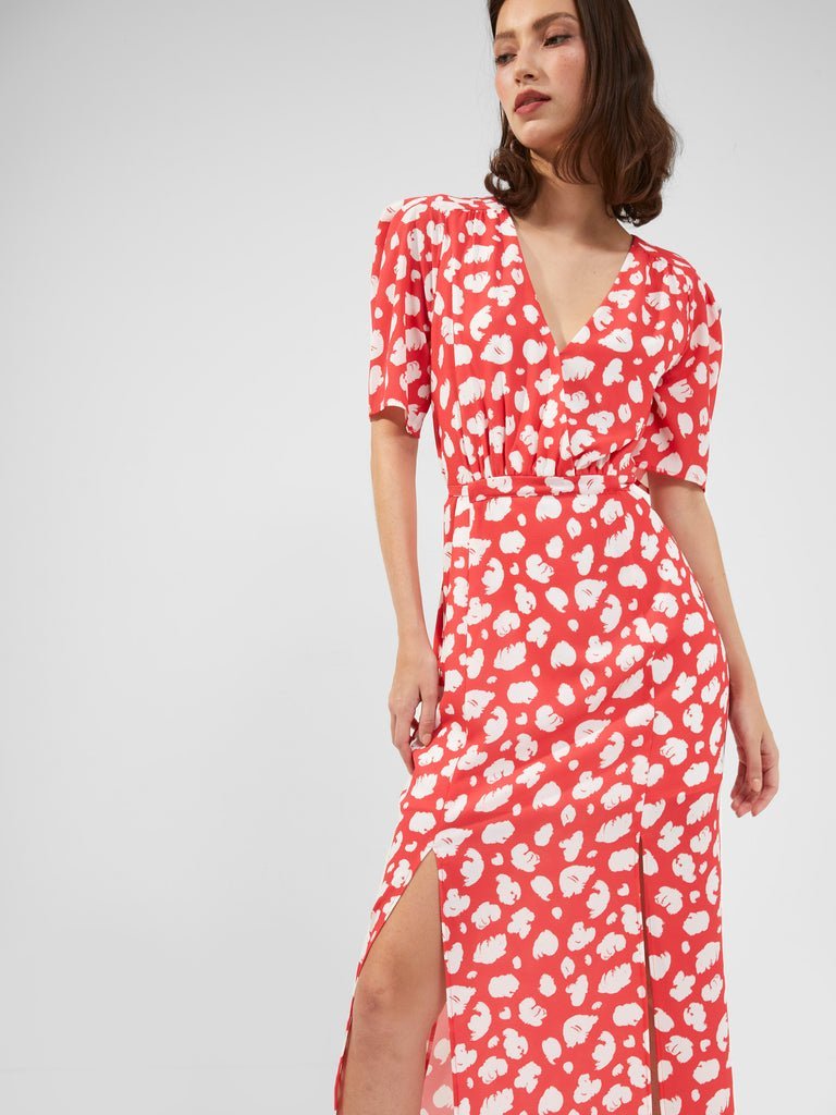 Master the dress code for every social event in sight with the Aimee Enid Front Split Midi Dress. In a glossy, satin construction, it’s printed with contrasting florals.