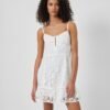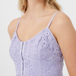 Look like a summer dream in the Binadari Cabello Lace Strap Mini Dress. The romantic stylings of a sweetheart neckline, corset bodice and intricate lace detailing make this strappy dress the perfect match for all your summer dates.